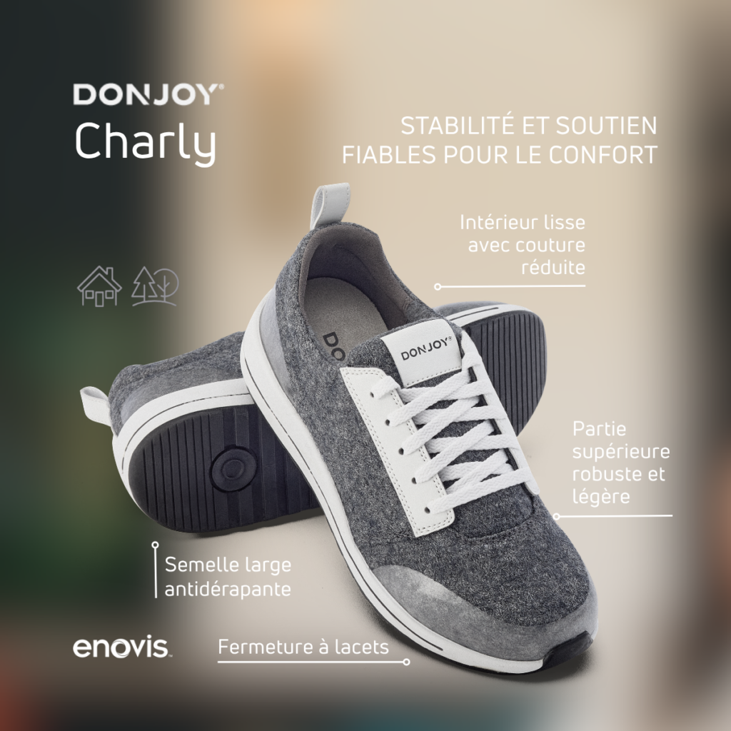 Avec la gamme de chaussures thérapeutiques DonJoy®, Enovis™ propose des solutions fiables, confortables, esthétiques et conformes aux standards médicaux. Nos modèles répondent avec style aux besoins spécifiques des patients, afin d’accompagner chacun de leurs pas.