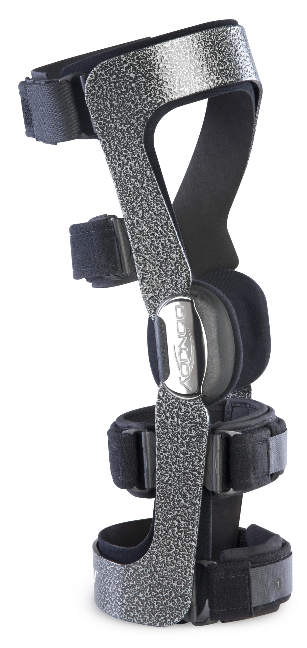 The DonJoy Armor FourcePoint™ delivers strong, lightweight protection for moderate to severe ligament instabilities – appropriate for active users and extreme‑sport athletes – combining a moldable aircraft‑grade aluminum frame with the patented Four‑Points‑of‑Leverage™ System and the FourcePoint™ hinge, which dampens knee extension in the high‑risk zone to support stability, reduce re‑injury risk, and ensure a secure, comfortable fit across a wide size range.